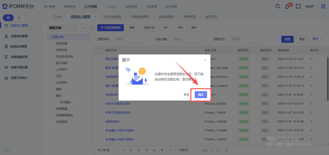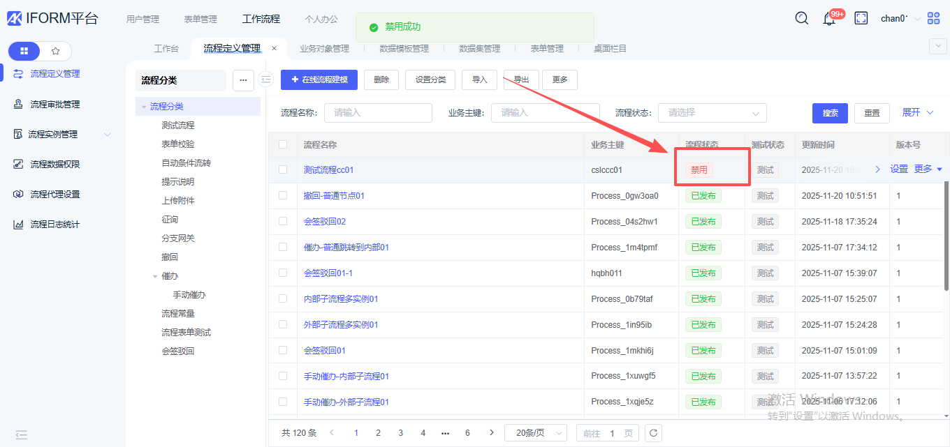 2、流程禁用后,对应的个人中心-流程中心新建列表不能出现该数据。