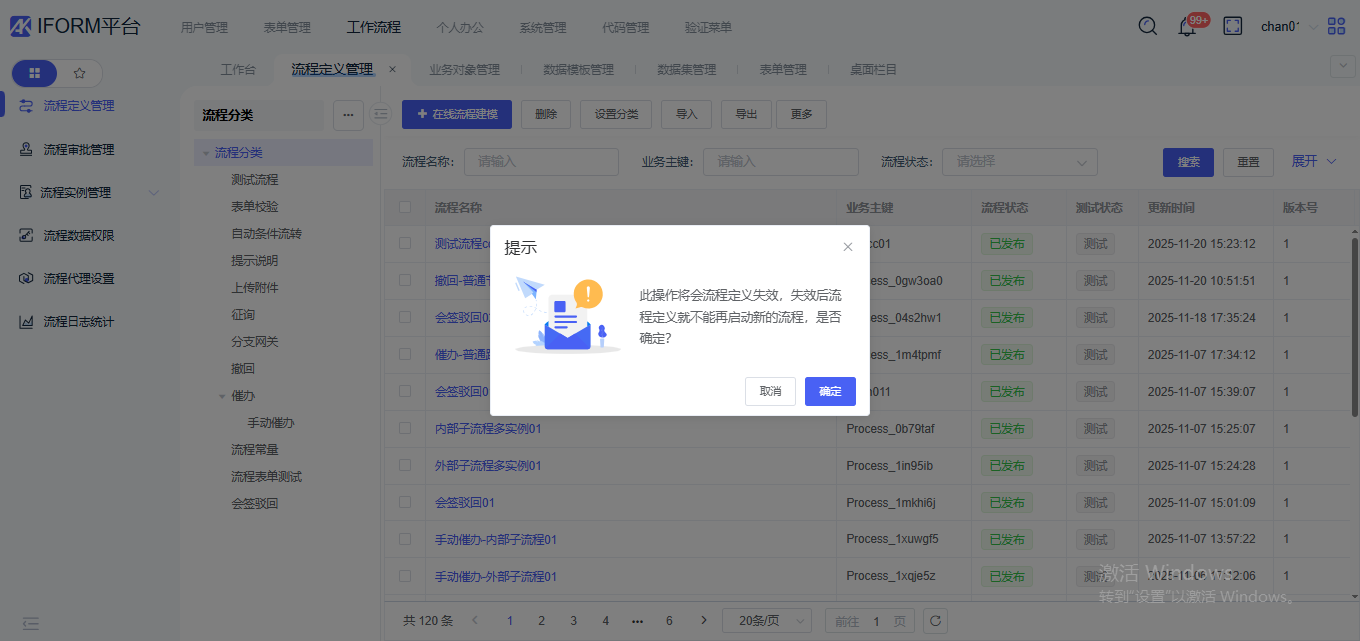 1、流程定义失效后不可恢复,需谨慎使用;如需恢复,请【复制】流程定义;
