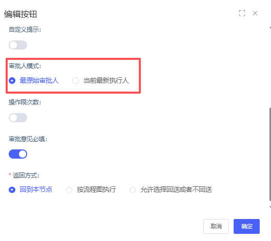 允许执行人为空:跳过该任务、允许手动选择处理人、自动审批同意操作