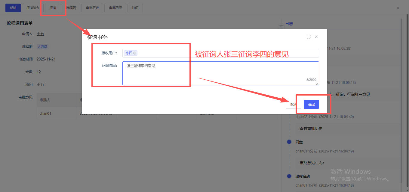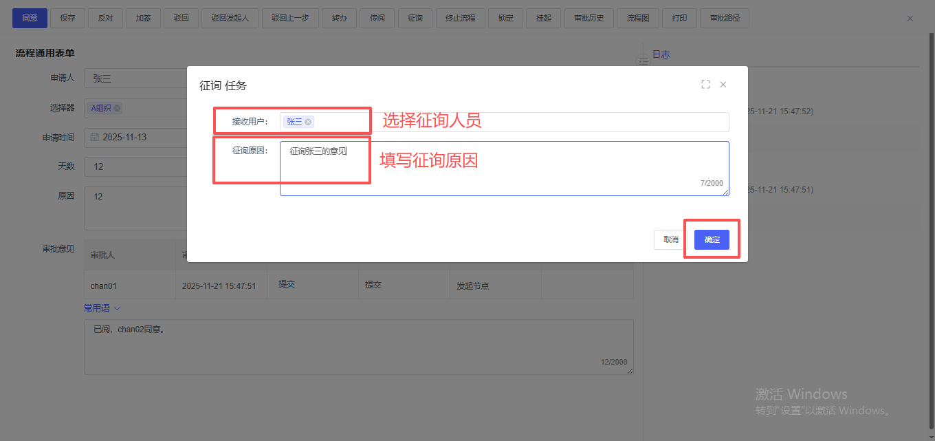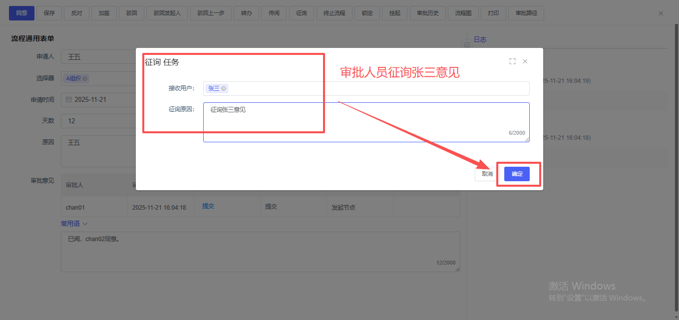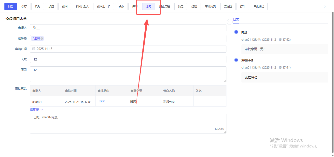 会签特权:可以配置权限来执行对应操作【直接处理会签节点,一票制度【一票同意、一票否决】,补充审批人员等等】