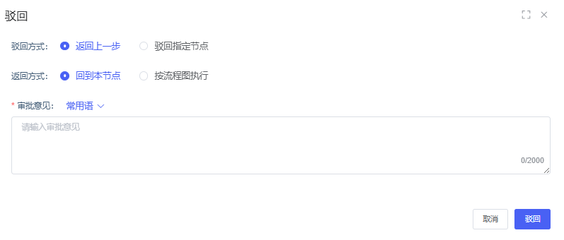 2、不允许驳回:由下个节点驳回到上个节点后,执行到上个节点时则不允许在执行驳回操作。