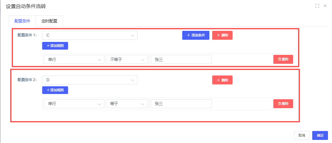 (2)设置多条规则时,根据判断配置条件的优先级进行执行,当不满足第一条规则时,判断第二条规则,以此类推;