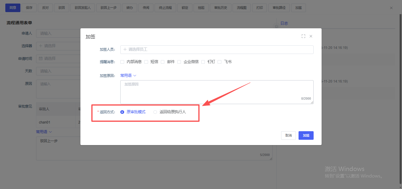 自由跳转:审批节点后,弹窗显示自定义选择节点