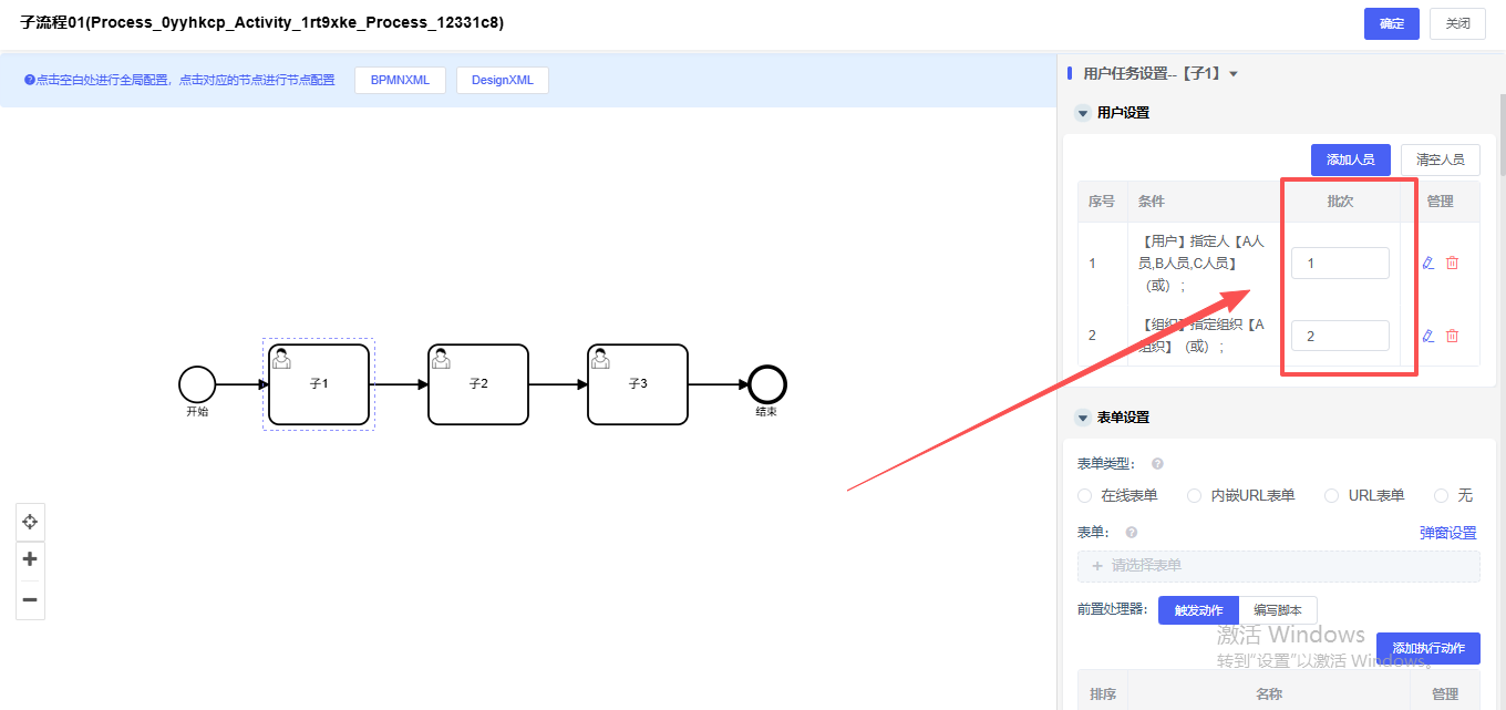 4、根据业务规则个性业务查找方式优先设置批次数字从1开始,通用查找审批人方式批次数字设置为最大值。