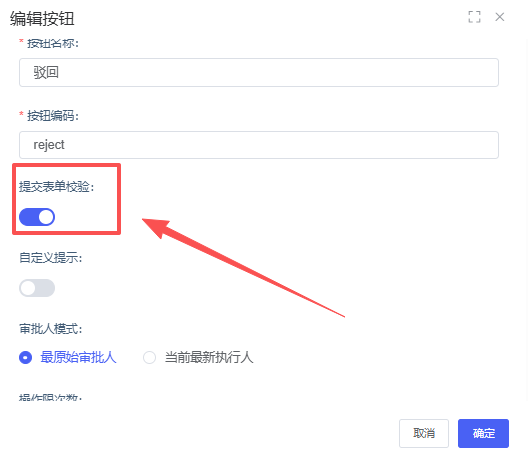 按钮设置:设置按钮规则【提交校验,自定义提示】,配置自定义按钮,以及显示按钮