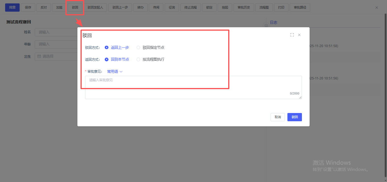 1、允许连续驳回:可以连续点击驳回操作按钮;
