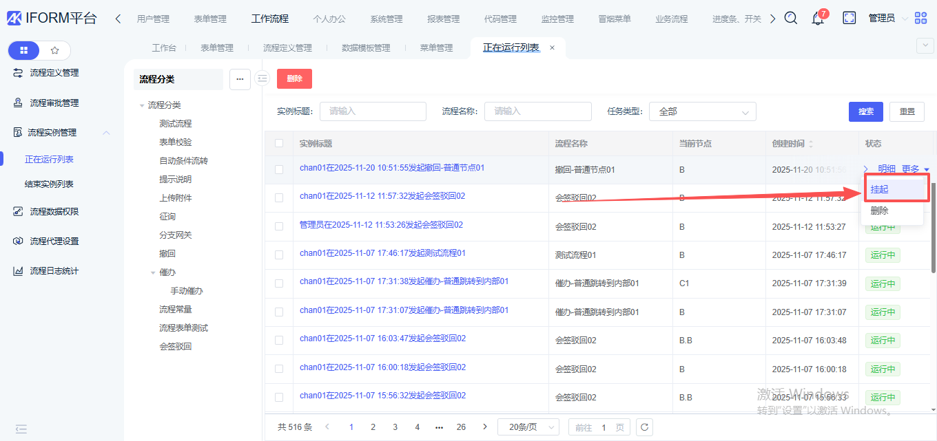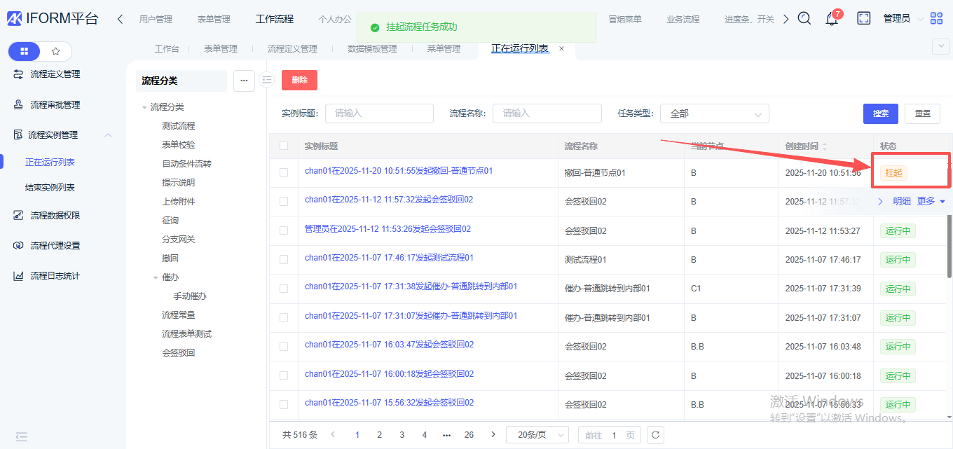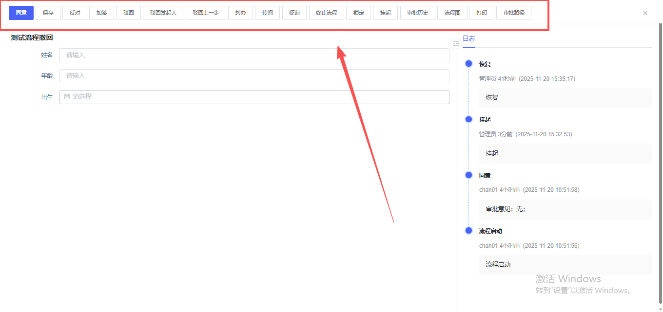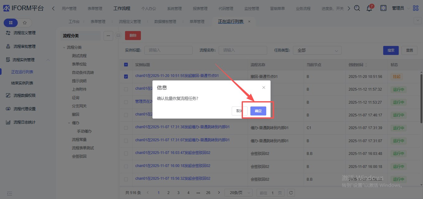 此时,使用待执行人账号查看该实例时,只能进行【恢复】操作,不可进行审批