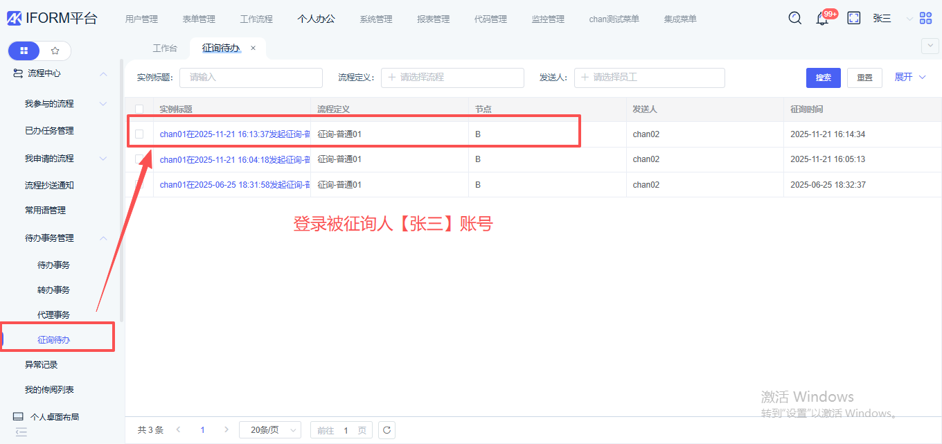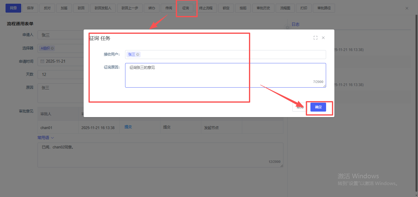 来源:审批人员进行征询操作,被征询人员需在【征询待办】列表处理征询任务