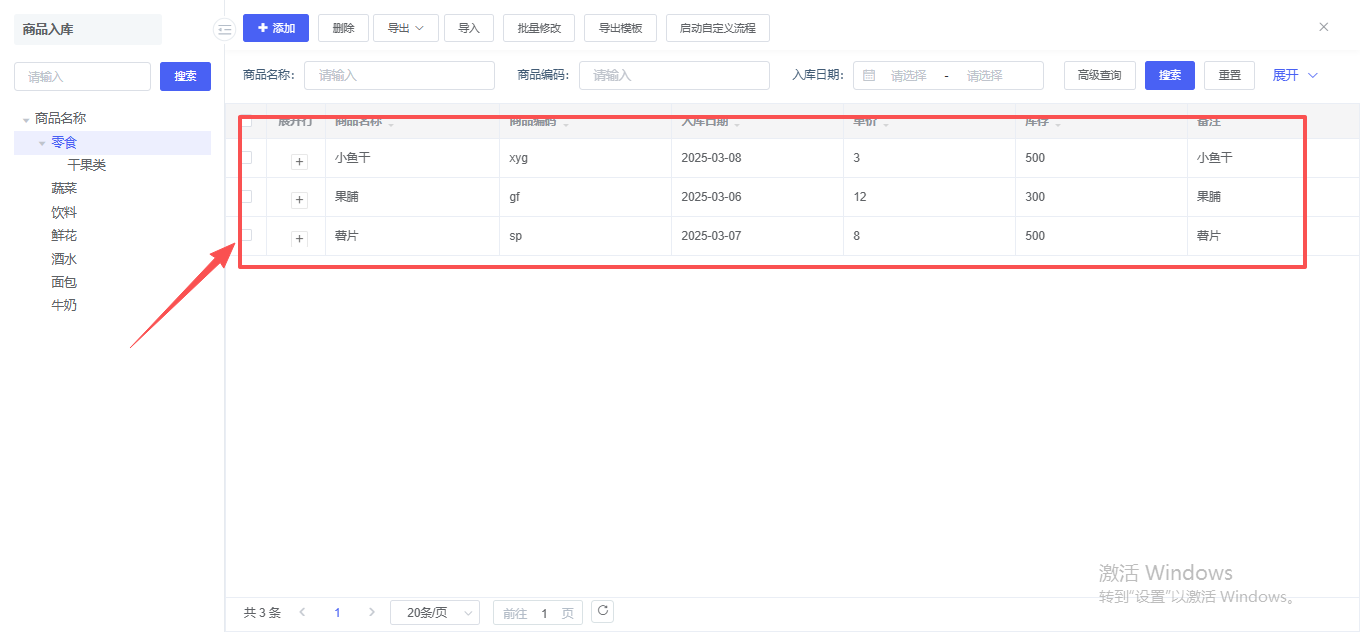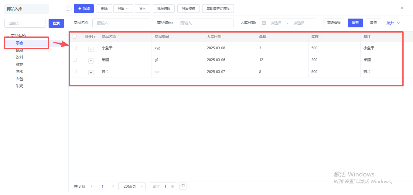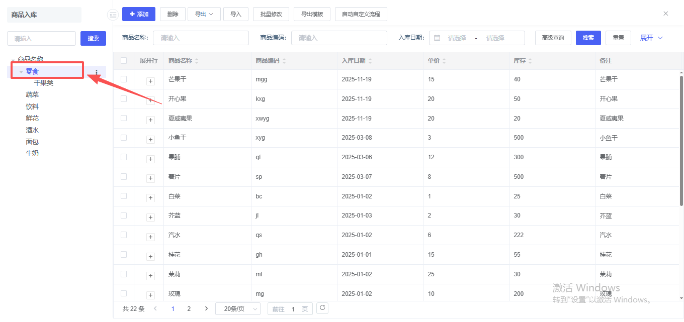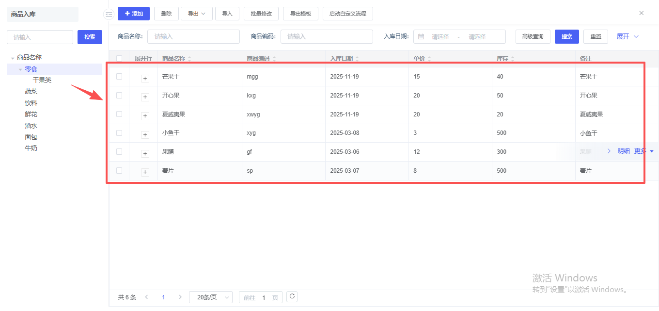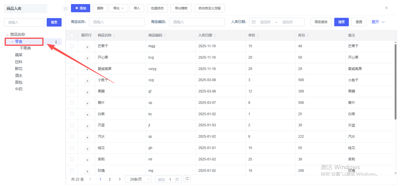 - 预览查看数据,选择点击左侧的树形数据,可筛选出于树形主键ID值相关联的数据。