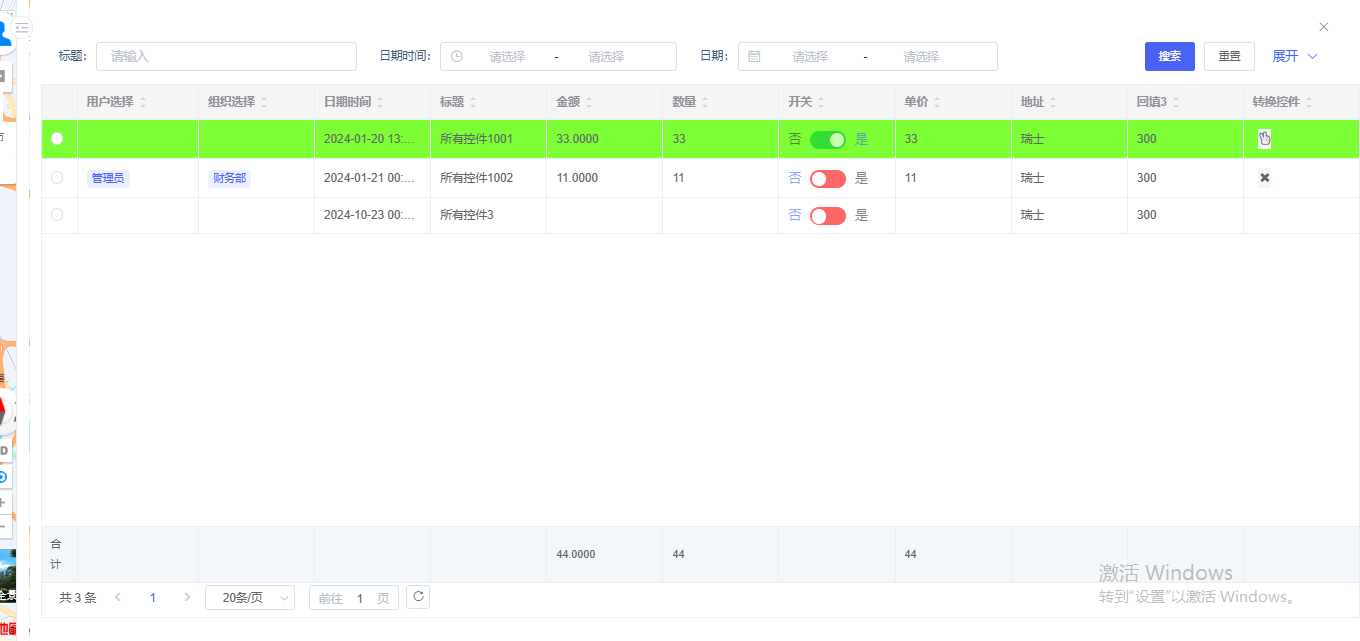 ①当关闭配置时,选中节点后,列表只会查询出选中节点的数据。