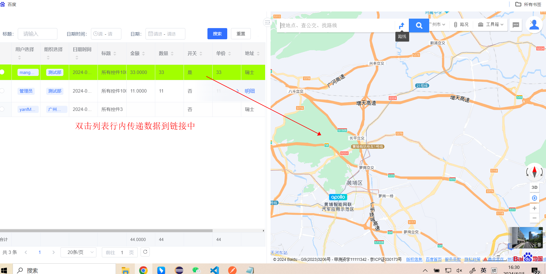 具体案例详细可见:【数据模板组合链接】双击左边列表行触发事件调用执行右边地图里的方法