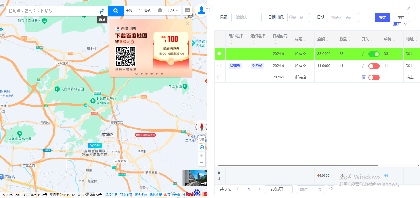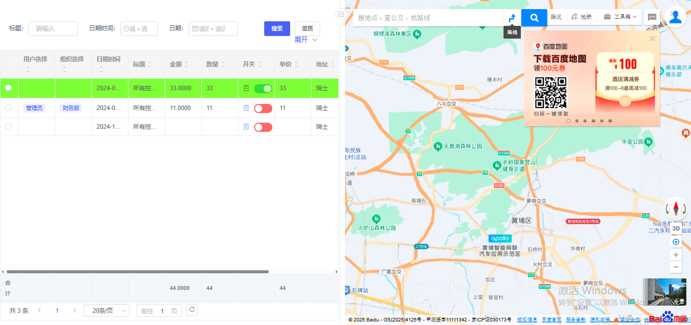 击左边列表行能否自定义脚本触发事件调用执行右边地图里的方法,或通过编写例子实现