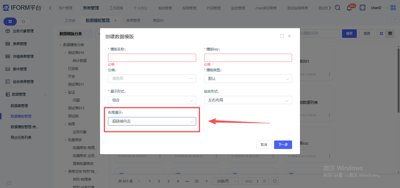 注意:组合列表的数据模板配置以自己配置的数据模板的数据和权限为主!