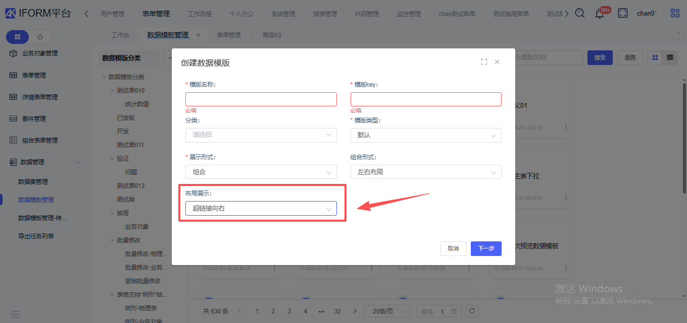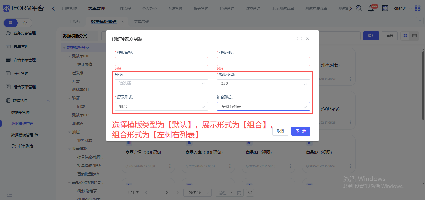 ②创建列表数据模板[可参考操作文档模板类型:默认]