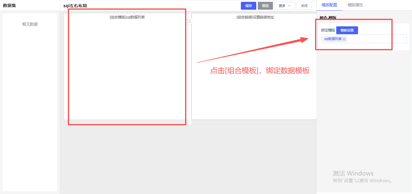 ③绑定模版:数据模板只能配置一个模板的数据,若选择的数据模板有配置动态的过滤条件,则需要将动态参数进行配置;